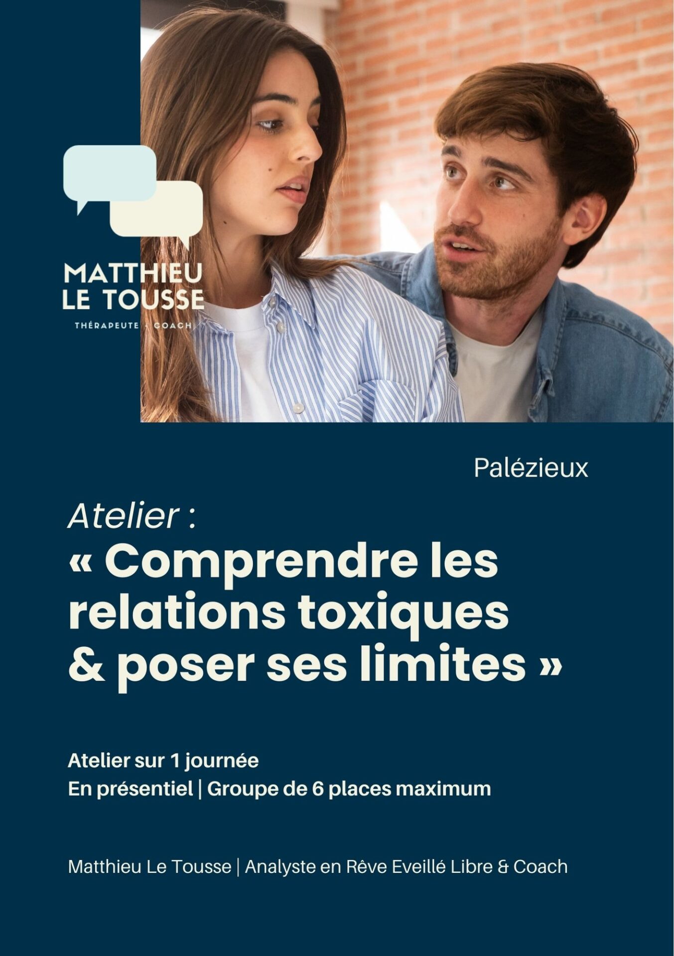 Cet atelier immersif d’une journée est un investissement essentiel pour votre bien-être. Il vous donnera les clés et les outils pratiques pour identifier clairement les schémas toxiques, les désamorcer, et construire des relations saines et nourrissantes.